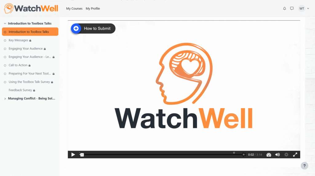 A walkthrough of the current WatchWell Toolbox Talks learning experience.